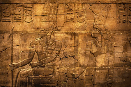 Ancient Egyptian Drawing on the Walls of the temple of Seti I also known as the Great Temple of Abydos in Kharga, Egypt