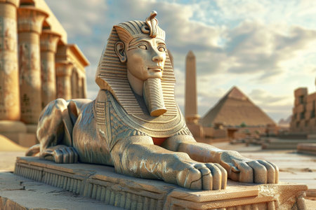 Closeup view of a pharaoh statue, capturing the detailed artistry of ancient egypt