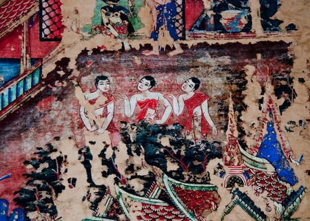 The Ancient painting of buddhist temple mural at Wat Phra sing, a famous temple in chiangmai province, Thailand. The temple is open to the public and has beautiful murals on the walls.