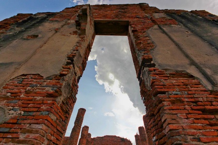 The ancient architecture of Wat Phutthaisawan. One of many temple ruins in city of Ayutthaya, Thailand