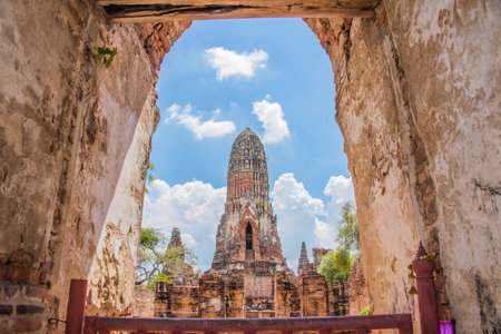 Stupa ruins of Ayutthaya Historical Park, ancient and beautiful temple in Ayutthaya period Wat Chaiwatthanaram, Thailand