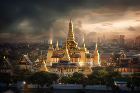 Night of Wat phra kaew Bangkok, Thailand with Ai Generated