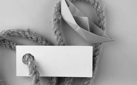 white sticker with thick braided rope and ship paper origami