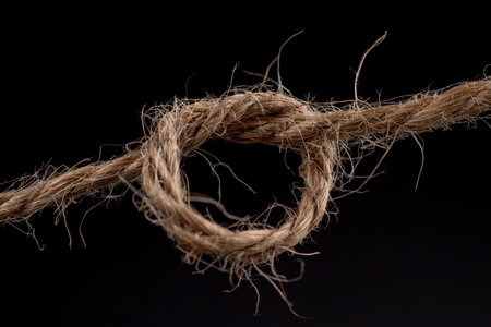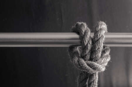Close up of a rope tied to a knot on a dark background