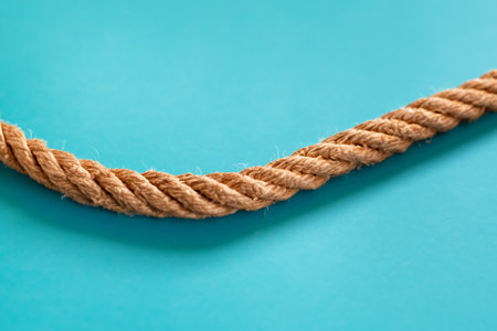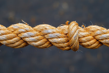 A detailed macro shot captures the intricate fibers of a thick, heavy-duty rope, tightly twisted together.