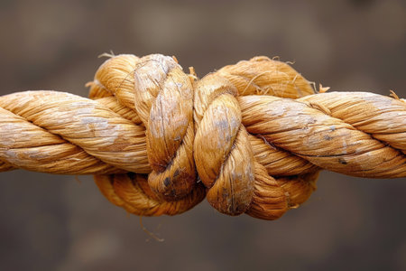 A detailed close-up of a knot in a rope, with a soft bokeh background creating a sense of depth and texture