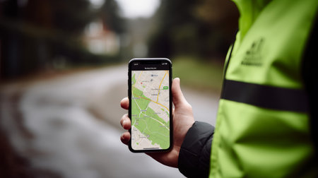 Close-up of delivery tech smartphone with map app emphasizing efficiency