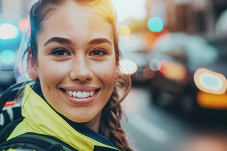 Portrait of Beautiful, Multiethnic, Female Paramedic Specialist on Late Night Shift. Heroic Empowering Woman Smiling and Posing for Camera, Reporting for Duty to Save Lives and Treat Emergencies