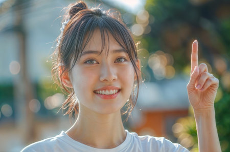 Portrait of a beautiful young asian woman with white t-shirt