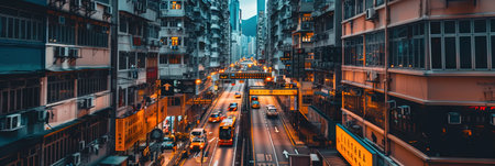 Generative AI City Top View of Skyscrapers Building by drone Hong Kong city - Aerial view cityscape flying above Hong Kong City development buildings, energy power infrastructure Financial and business center Asia