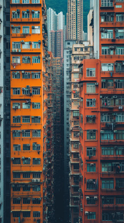 Vibrant skyline of densely packed buildings in a bustling urban area