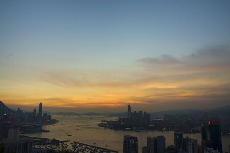 Hong Kong cityscape at sunset. Hong Kong is a global financial center and a major tourist destination.