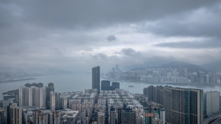 The iconic skyline of Hong Kong at dusk, Overcast Sunset Skyline of Hong Kong Ai generated