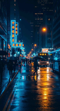 Hong Kong, China; Dic 3 2017: Busy street at night with people, cars and neon lights