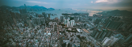 Aerial view Panomara Cityscape of Kowloon District in Hong Kong, China