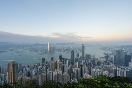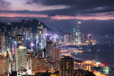 HONG KONG - NOVEMBER 11, 2018: Evening scene of Hong Kong city and Victoria harbour from The Peak.
