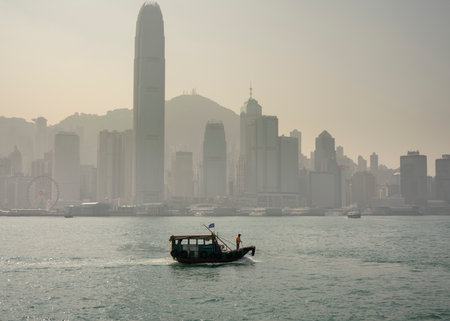 Victoria Harbour, Hongkong, China, 22nd, January, 2019: The ferry on the Victoria Harbour.