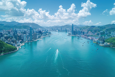 Skyline of central Hong Kong with scenic skyscrapers