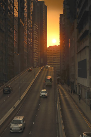 Urban Sunset Alignment on Busy Hong Kong Street Dec 6 2025