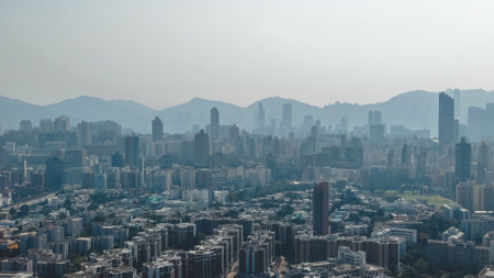 Hong Kong, Hong Kong - November 6 2019 : Hong Kong cityscape, view from mountains