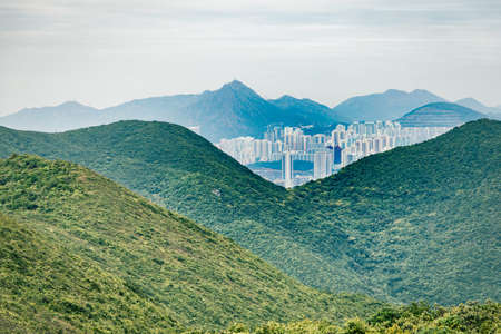 Residential buildings in mountain in Hong Kong