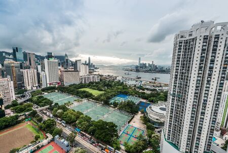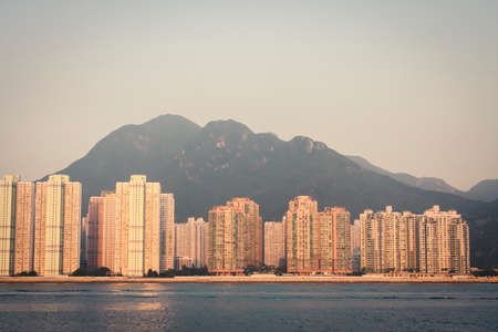 Harbour view of residential area in Hong Kong west side, in summer