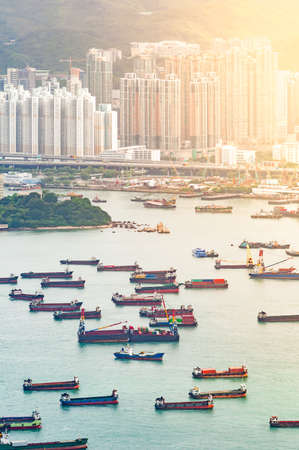 Cargo container ship nearby Hong Kong port.