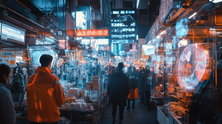 Unidentified people walking in the night market.