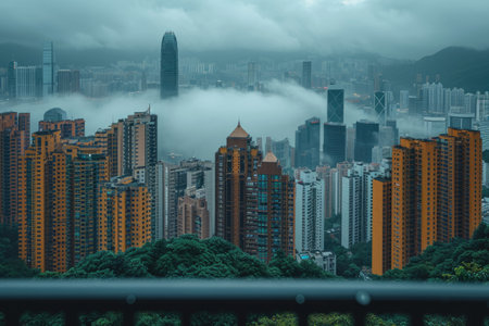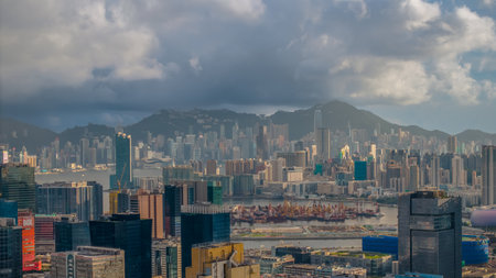 The cityscape of Hong Kong offers an impressive atmosphere on a cloudy day