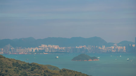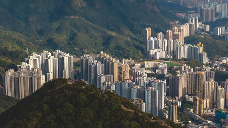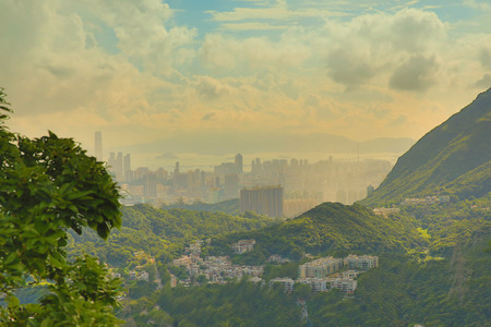 Hong Kong, Hong Kong - November 6 2019 : Hong Kong cityscape, view from mountains
