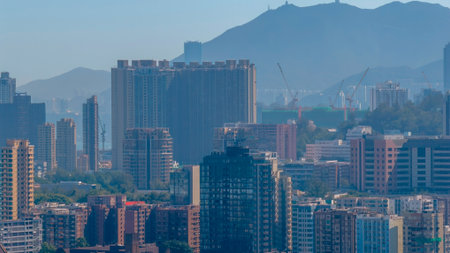 Modern highrise buildings and city streets in East Kowloon Dec 17 2025