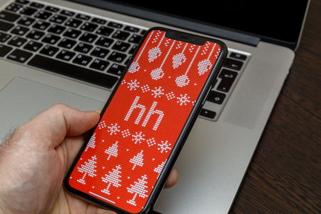 Moscow, Russia - January 22, 2021: In hand an iPhone, on the screen the application HH