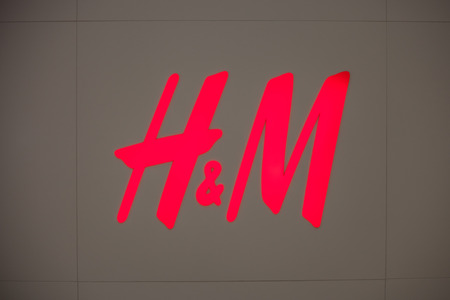 HONG KONG - CIRCA NOVEMBER, 2016: close up shot of H & M sign. H & M Hennes & Mauritz AB is a Swedish multinational retail-clothing company, known for its fast-fashion clothing.