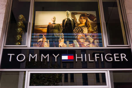 FRANKFURT, GERMANY - Oktober 24, 2015: Detail of the entrance to a Tommy Hilfiger store. Tommy Hilfiger is an American fashion, apparel, design, fragrance retail company, offering consumers low end products