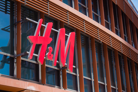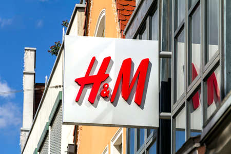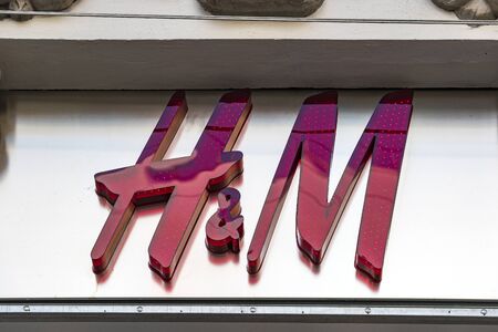 HAMBURG, GERMANY - CIRCA MAY 2017: Sign of H & M Hennes & Mauritz AB Swedish multinational clothing retail company
