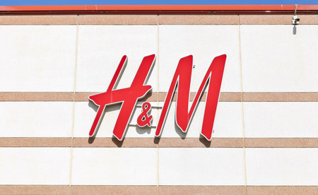 SAN ANTONIO, USA - APRIL 18, 2018 - H&M logo on a store. H & M Hennes & Mauritz AB is a Swedish multinational retail-clothing company, known for its fast-fashion clothing.