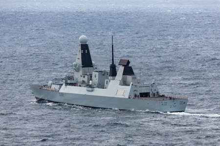 Sydney, Australia - October 11, 2013: HMS Daring Type 45 (Daring-class) air-defence destroyer of the Royal Navy departing Sydney Harbor.
