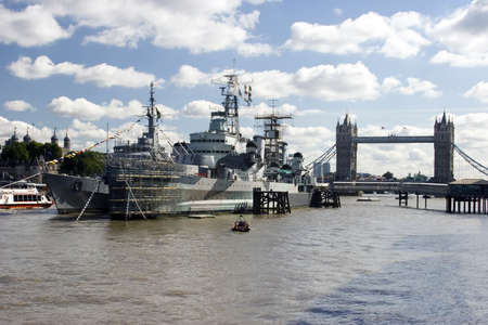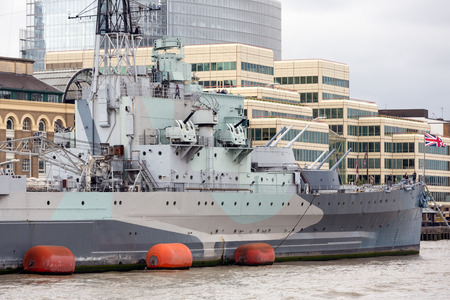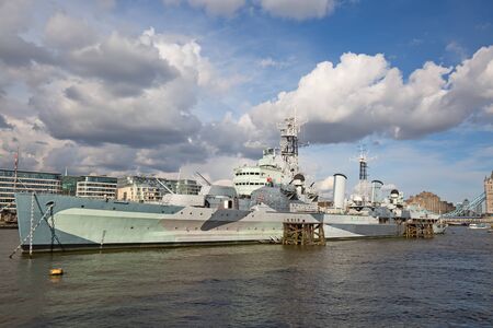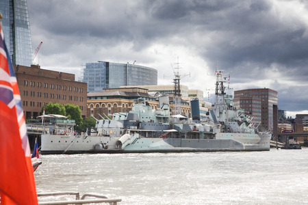 LONDON - July 17 the HMS Belfast on the River Thames, on July 17, 2013 in London, England, HMS Belfast is a museum ship, originally a Royal Navy light cruiser