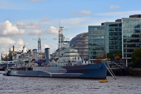 London; Hampstead; England - october 21 2021: the HMS Belfast a light cruiser of the second war