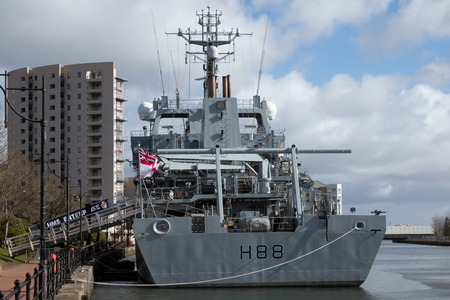 CARDIFF UK MARCH 2014 - HMS Enterprises docks at Cardiff