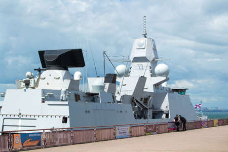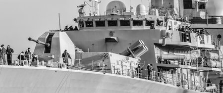 GDYNIA, POMERANIA / POLAND - 2018: Crew aboard the British warship of the HMS WESTMINSTER frigate