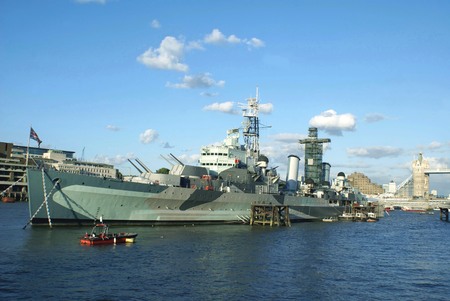 HMS Belfast a Royal Navy light cruiser on the River Thames in London, England