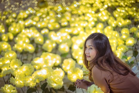 Portrait of asian woman, outdoor in night. Christmas and New Year concept