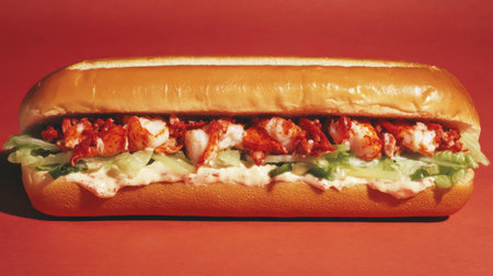 Delicious lobster roll on toasted bread with fresh lettuce and creamy sauce
