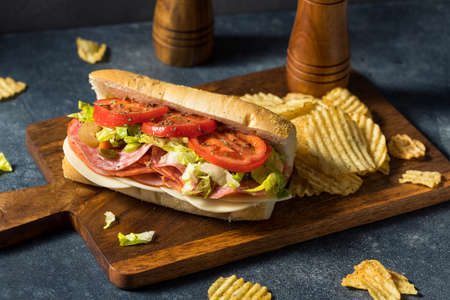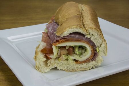 Italian sub sandwich with provolone cheese ham prosciuttini cappacuolo salami and pepperoni