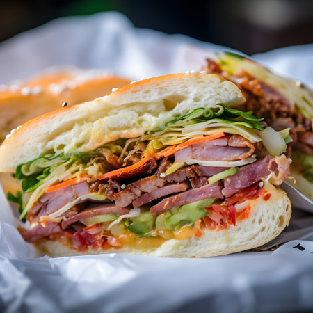 artisanal sandwich with fresh ingredients and unique flavors, created with generative ai
