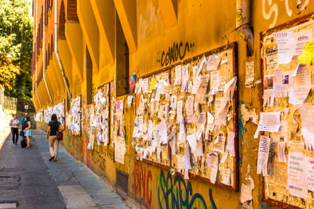 BOLOGNA, ITALY - AUGUST 27, 2016: College students still use physical bulletin boards to publish their ads