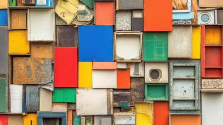A vibrant collage of various sizes and shapes of boxes in an eclectic arrangement, showcasing diverse colors and textures, perfect for artistic and creative projects.