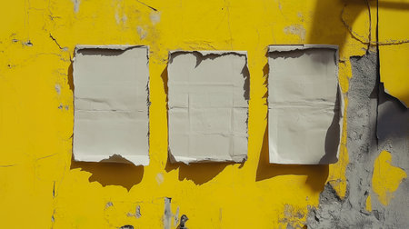 colorful urban wall texture with three wrinkled glued poster templates