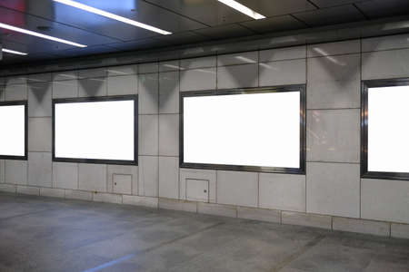 Blank billboard mockup near to escalator in subway station.